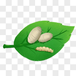 卡通手绘绿色桑叶白色蚕茧蚕蛹免抠素材