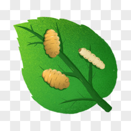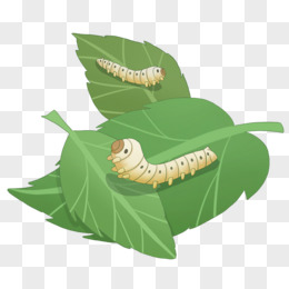 卡通手绘桑叶上的熟蚕成年蚕宝宝免抠素材