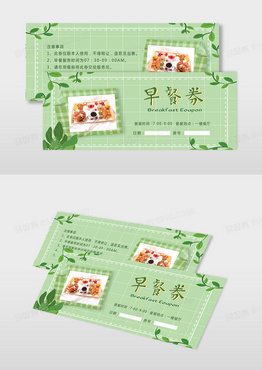 酒店自助早餐代金券入场券优惠券早餐券绿色简约清新