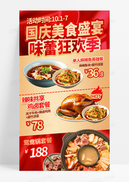金色红色大气喜庆2025国庆中秋餐椅美食促销手机海报