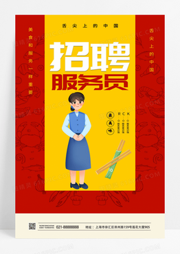 红色背景复古风招聘餐饮招聘餐饮招聘宣传单