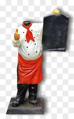 手拉广告牌的厨师雕塑牌