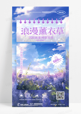 时尚插画创意浪漫薰衣草旅游手机海报AI
