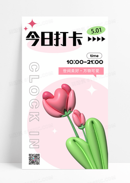 粉色花朵打卡设计手机海报