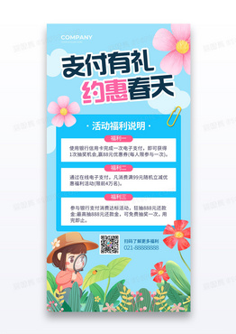 蓝色花草丛春日营销支付福利支付有礼约惠春天宣传海报