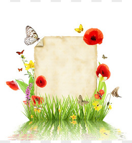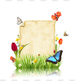 鲜花草地蝴蝶纸张背景