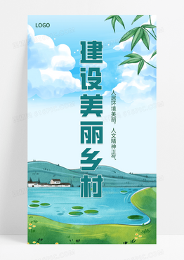 唯美自然蓝天白云草地风车建设美丽乡村手机宣传海报乡村建设美丽新农村展板
