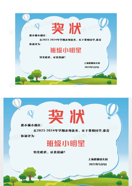 卡通草地风景小清新幼儿园荣誉证书奖状