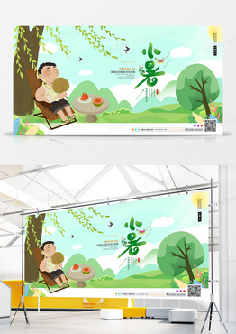 绿色卡通可爱二十四节气之小暑宣传展板设计