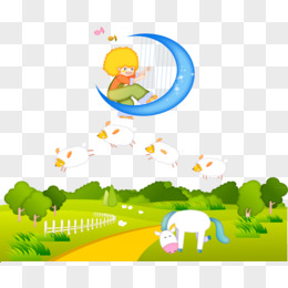 卡通手绘女孩光脚走在草地上抓昆虫免抠元素