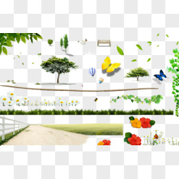 手绘卡通草坪花坪免抠元素