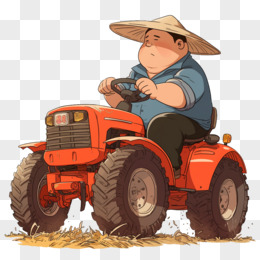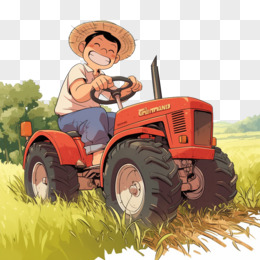卡通风农业农民开着拖拉机从农田里经过免抠元素