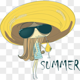 3D卡通戴着草帽穿短裙拿着饮料的女孩免抠元素
