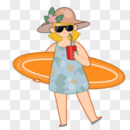卡通穿泳装戴墨镜戴草帽的女孩躺在沙滩毯上免抠元素