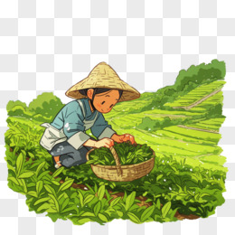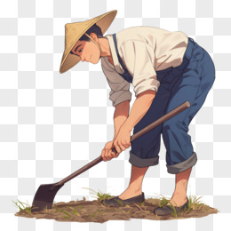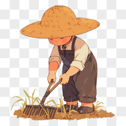 卡通风秋天一个农民抱着成熟的麦子免抠元素