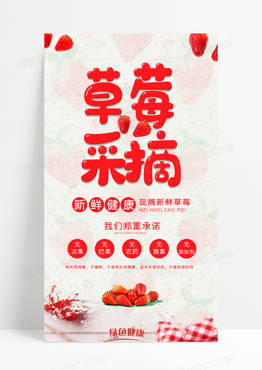 简约新鲜草莓采摘健康草莓X展架易拉宝
