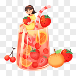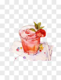 一组插画风夏日冷品饮料合集之草莓汁元素
