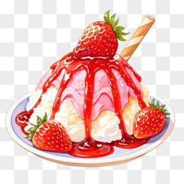 卡通水彩插画风格夏季饮品冰淇淋冰棍草莓绵绵冰免抠元素