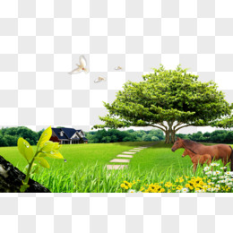 卡通手绘免抠大草坪和树素材