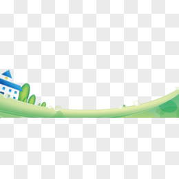 唯美卡通可爱手绘草坪房子树云朵
