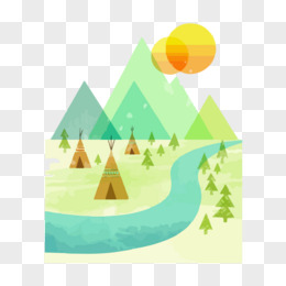 卡通清新春天草坪山坡