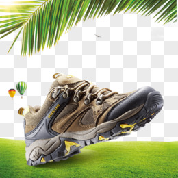产品实物登山鞋草坪绿叶