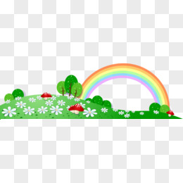 ai矢量植物草地草坪小河彩虹png免抠