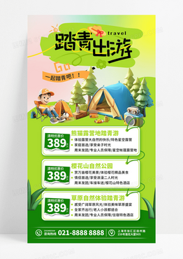 绿色3D清明节踏青出游春游旅游露营手机海报