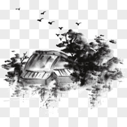 手绘水墨国风草屋元素