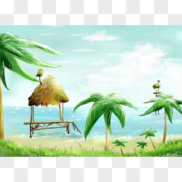 动漫椰子树大海草屋