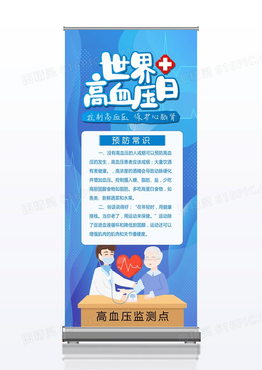 蓝色大气卡通简约世界高血压日展架易拉宝