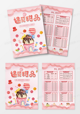 粉色卡通多层次遇见甜品菜单价目表宣传单