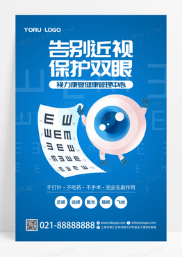 蓝色视力表卡通告别近视守护双眼保护视力健康管理视力矫正宣传单