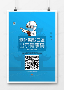 一组扁平蓝色调医疗医院地贴图标之测温区元素