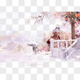 唯美古风水彩插画