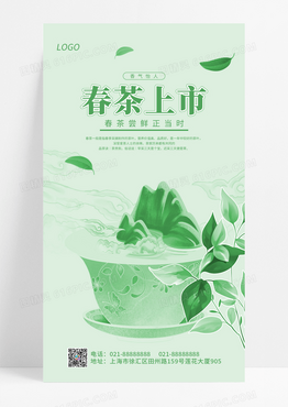 绿色手绘插画春茶上新宣传海报春茶茶叶春茶手机宣传海报