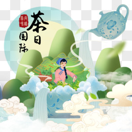 手绘矢量茶盖碗茶叶喝茶工具素材
