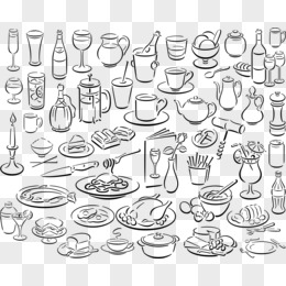 简约白描餐具矢量