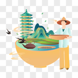 手绘国潮茶文化微景观素材