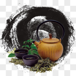 手绘水墨风古典茶具元素