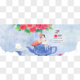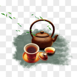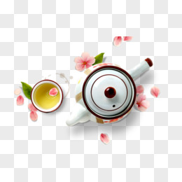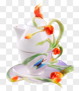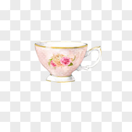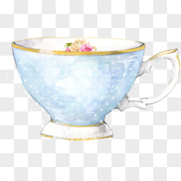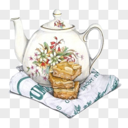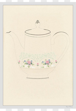 手绘茶杯花草叶子茶壶甜甜圈椰子