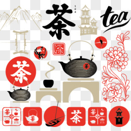 梅花灯笼与茶文化书法字等矢量素材免费下载,