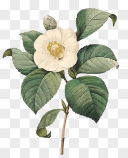 水彩淡雅白色茶花