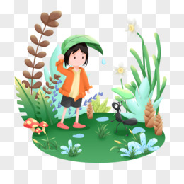 手绘卡通下雨的草地插画元素