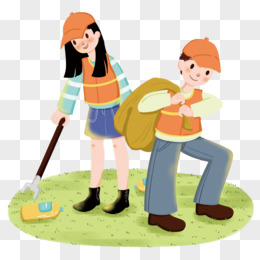志愿者清扫草地公益活动插画风素材