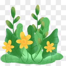 手绘插画风黄花绿色草丛元素