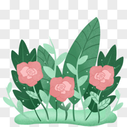手绘插画春天花丛草丛玫瑰元素