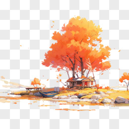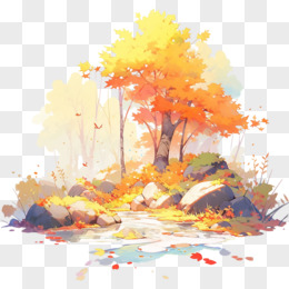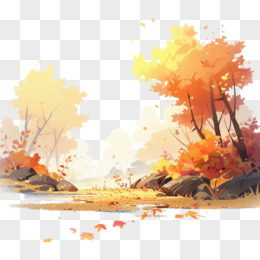 秋天风景枫叶落叶插画