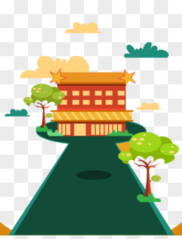 卡通手绘免抠过新年房屋大门张灯结彩素材