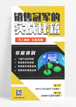 黑白蓝超酷插画风销售冠军的实战秘籍手机海报销售培训海报设计